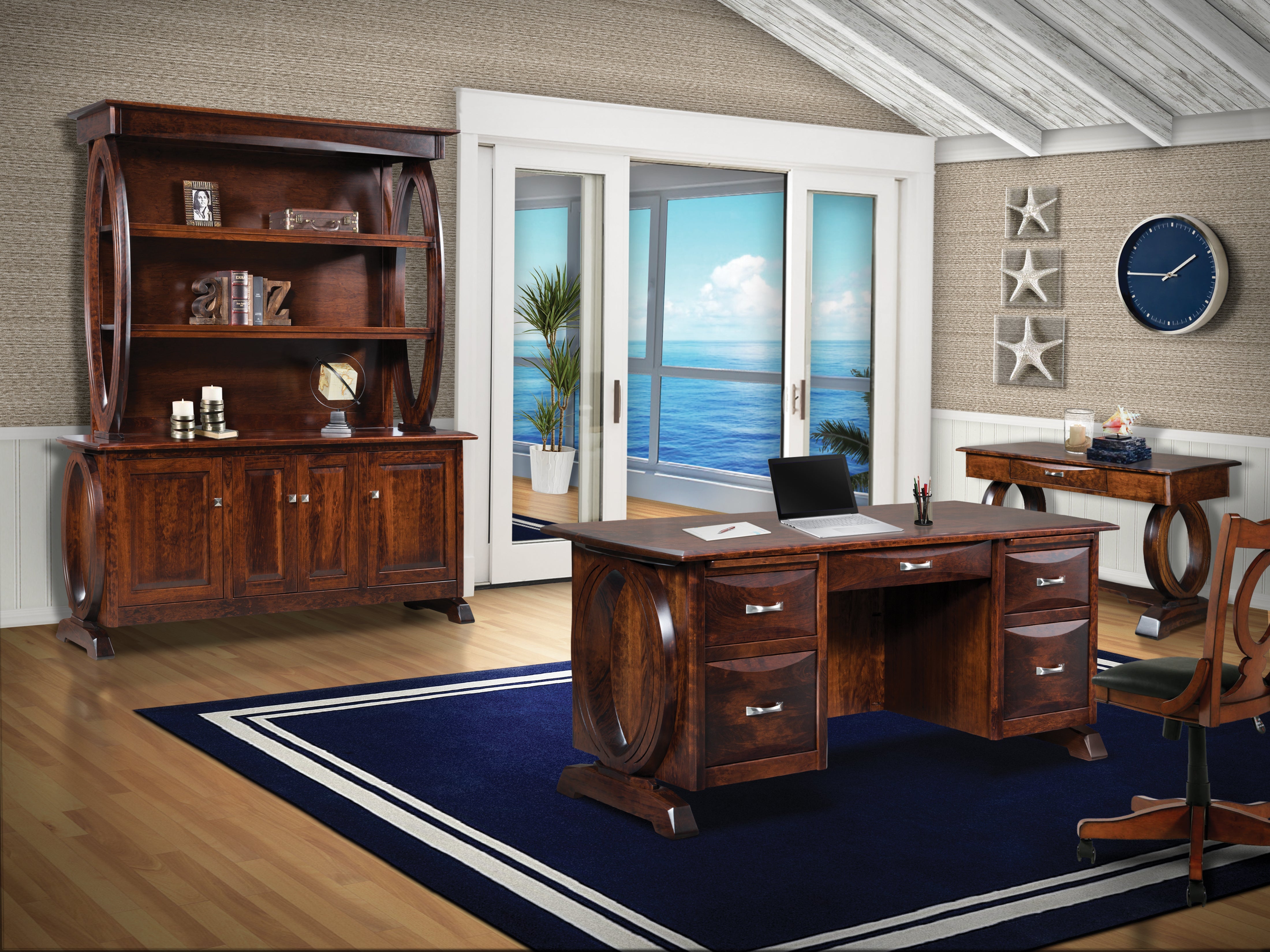 • Solid curved base, curved drawer fronts